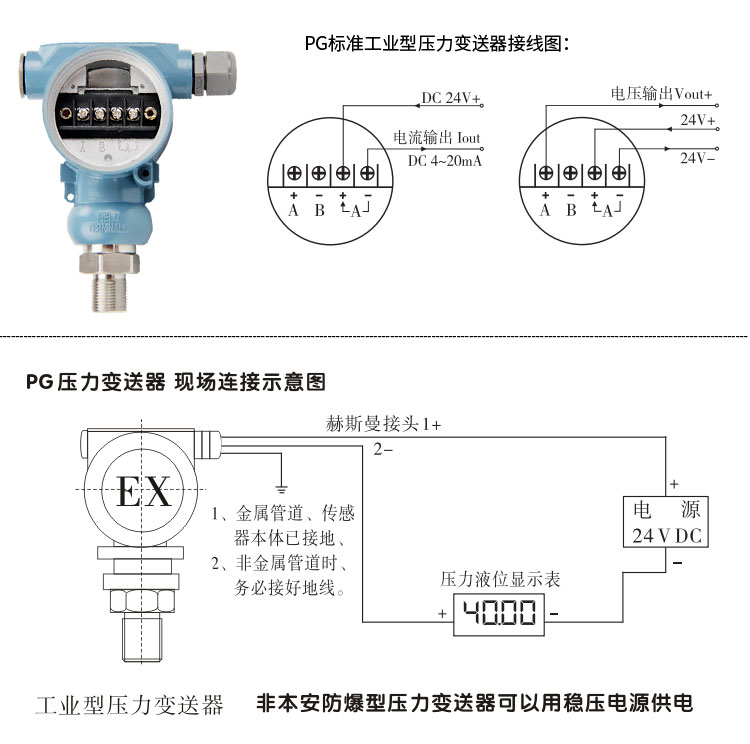 擴散硅壓力變送器,PG1300Y數(shù)顯壓力變送器,接線圖