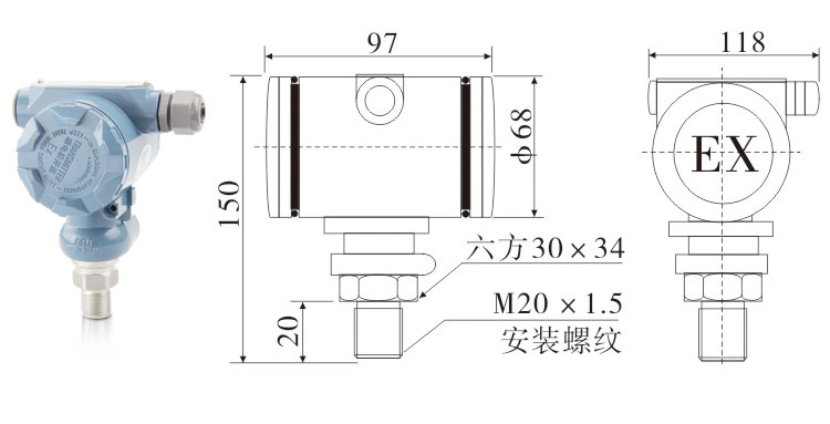 可選隔離防爆型防爆、防爆標志:Ex dⅡB T4 Gb