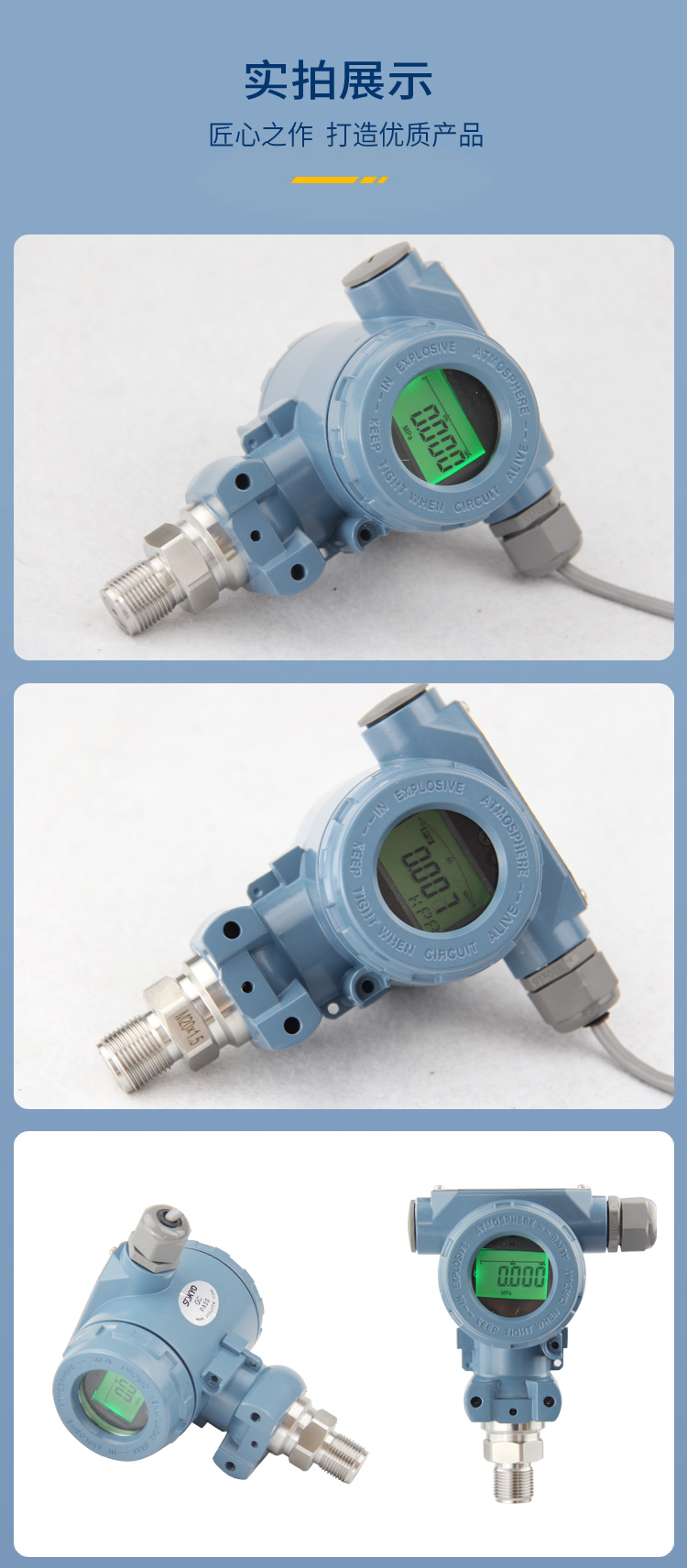 3、確定螺紋接口:常用壓力接口為M20X1.5,如果在特殊場(chǎng)合下使用應(yīng)考慮防爆以及防護(hù)等級(jí)。